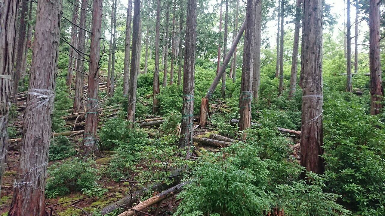 900m位かな?一旦平地になるところで間伐材が散乱して歩きにくくなります。