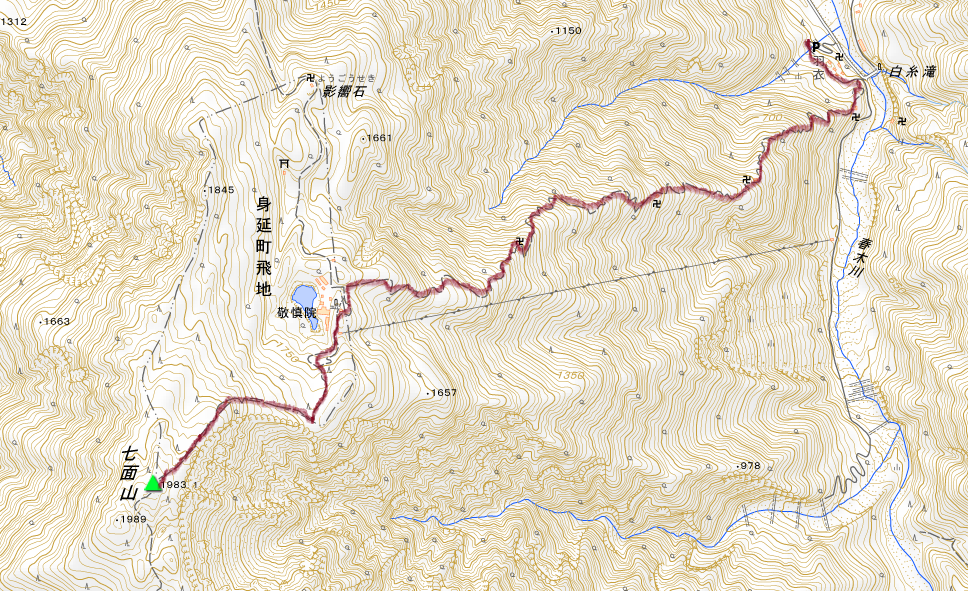 ここで初めて地理院地図を見たら、敬慎院から山頂まで標高差250mもある。