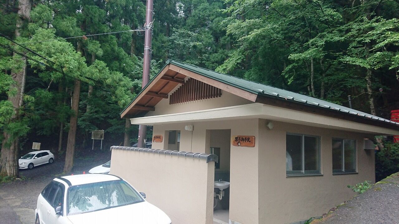 ちょっと歩いて登山口のトイレ。この近くにも駐車地あるじゃん。