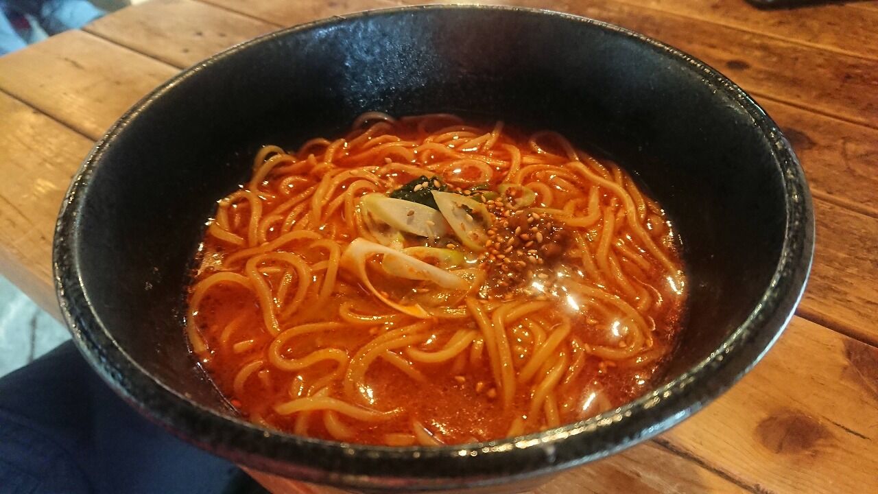とりあえず、寒いので山荘で担々麺を食べました。