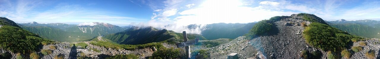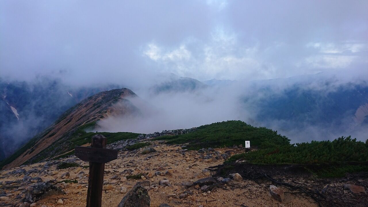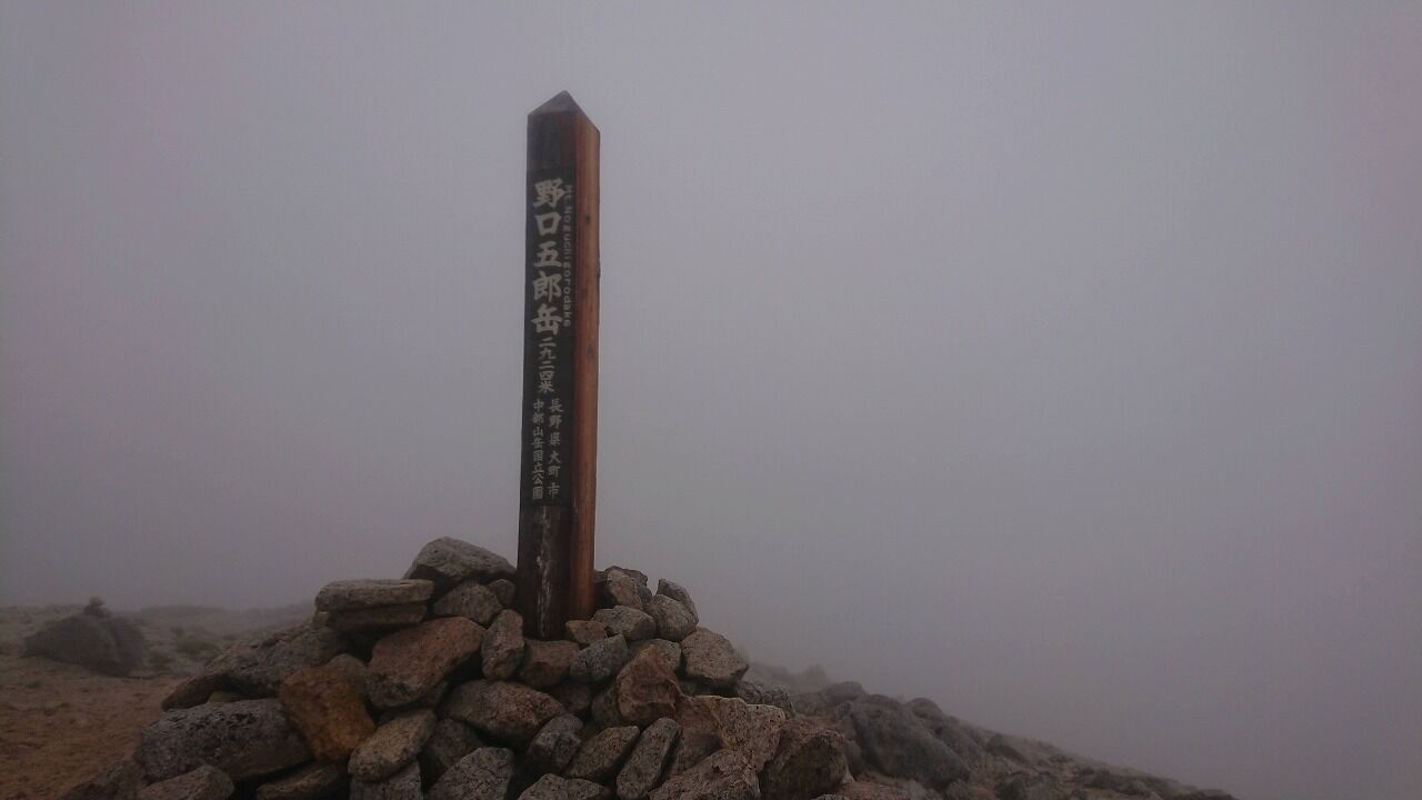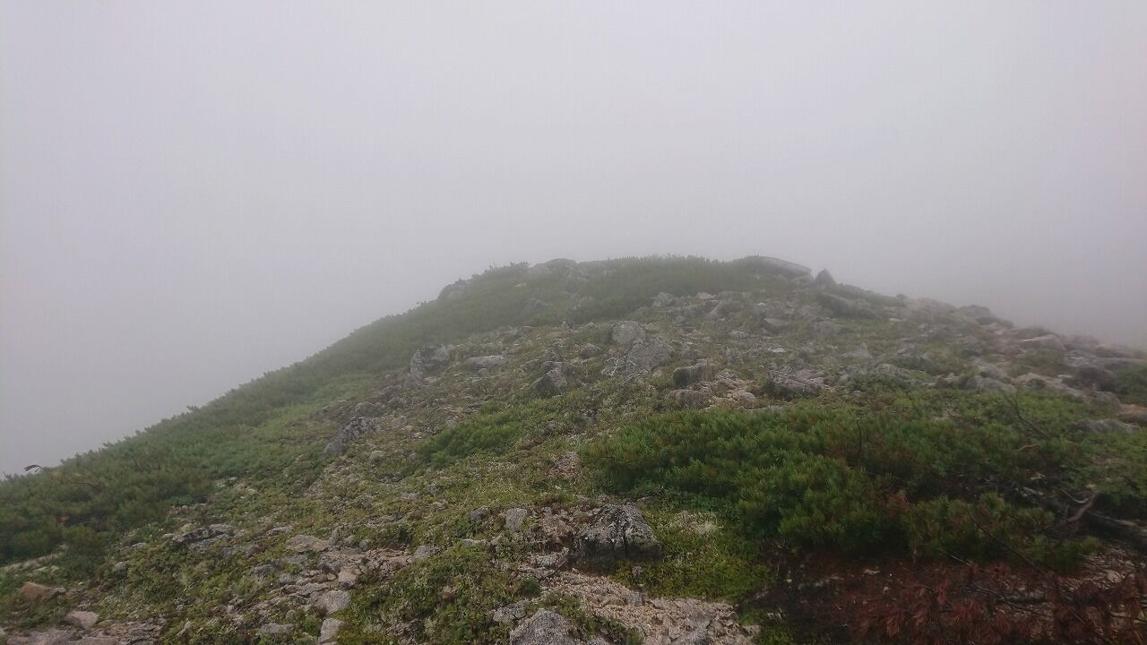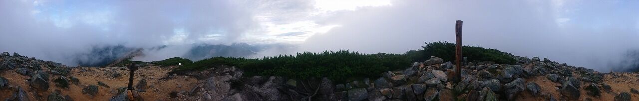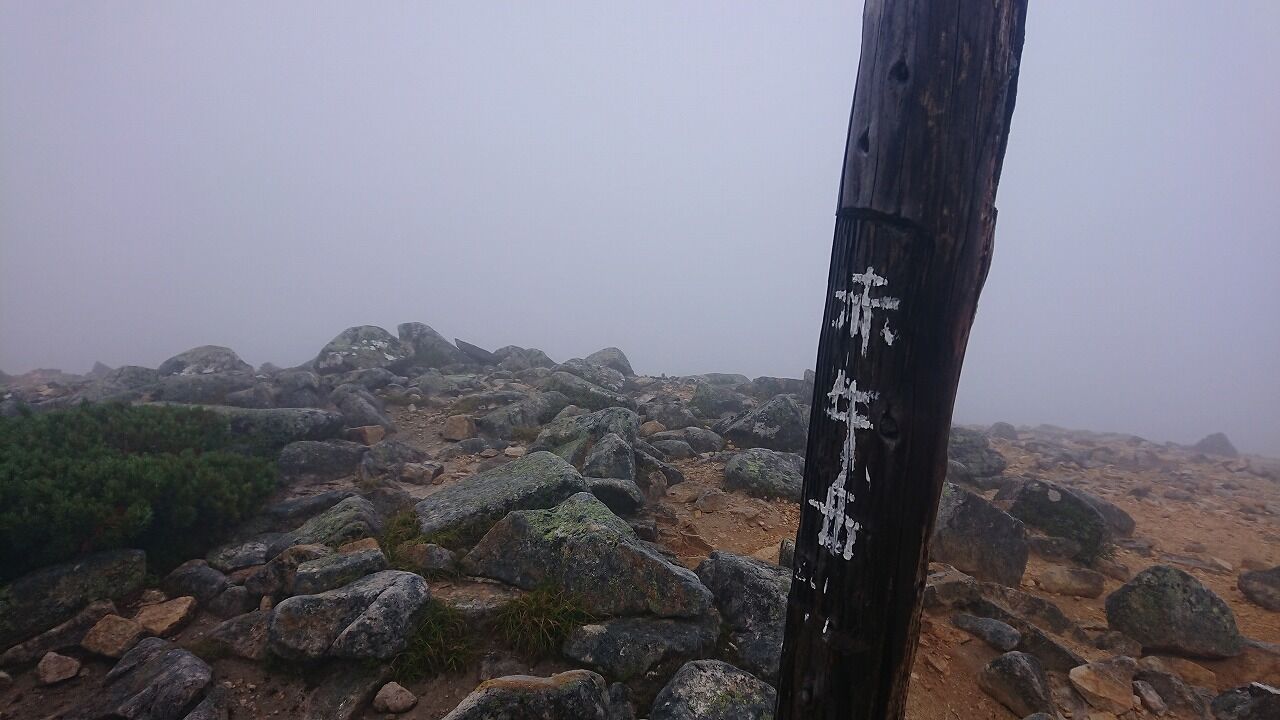 朝は雨が降っていた水晶岳の山頂です。