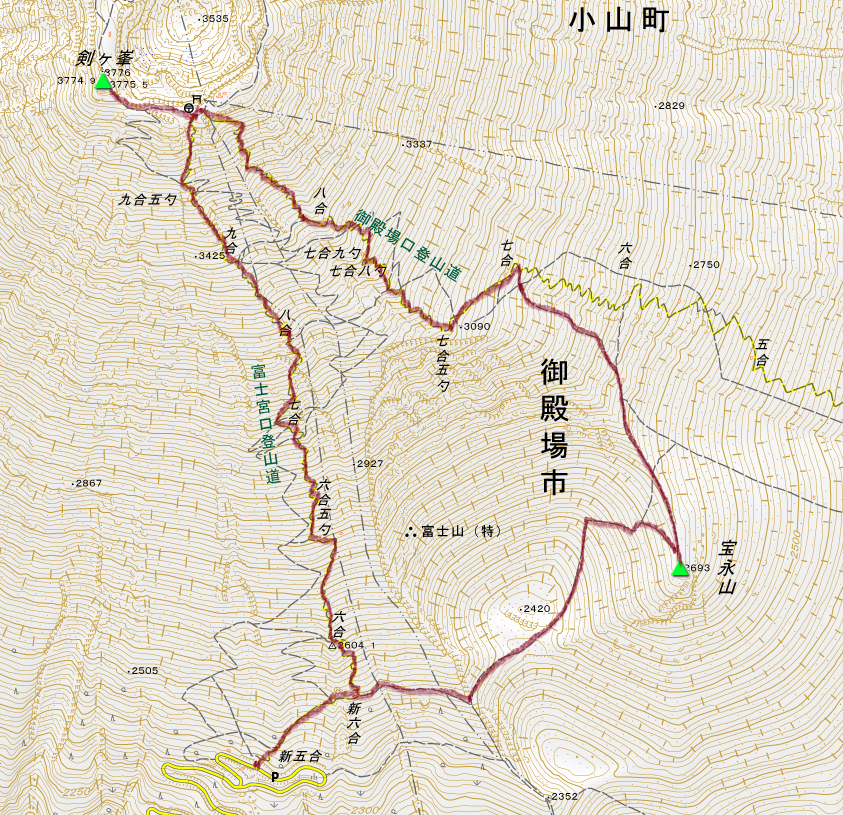 3000m山シリーズ。富士山です。数日前に夏山が終了し、五合目まで車で上がれるようになりました。人も減っているでしょうし、快適に登れます。富士宮口を夜中に出発し、ご来光を見られるように計画しました。帰りはちょっとだけ大砂走と宝永山という黄金ルートじゃないでしょうか。