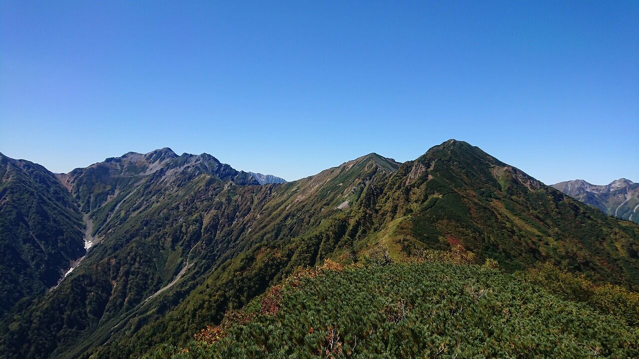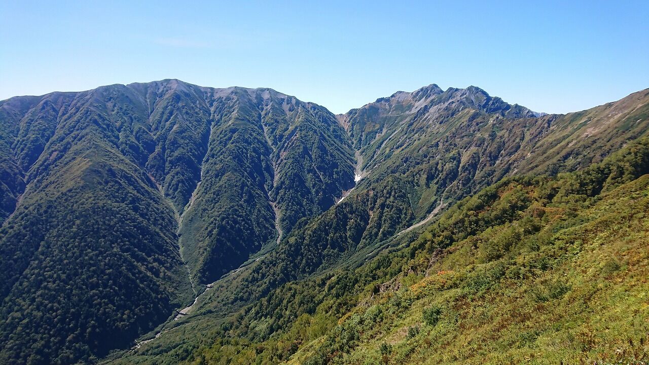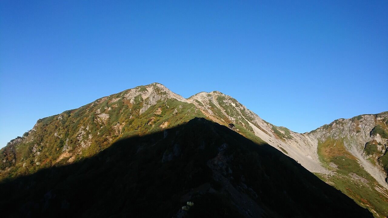 振り返ると鹿島槍のツインピークが。完全に晴れましたね。