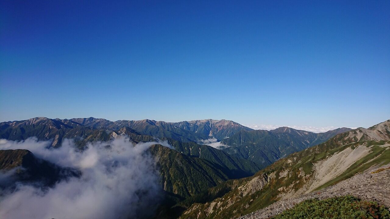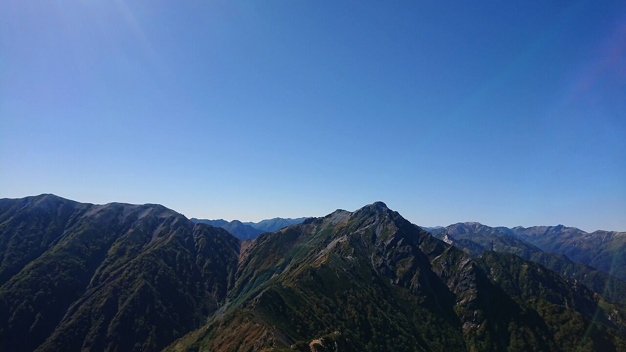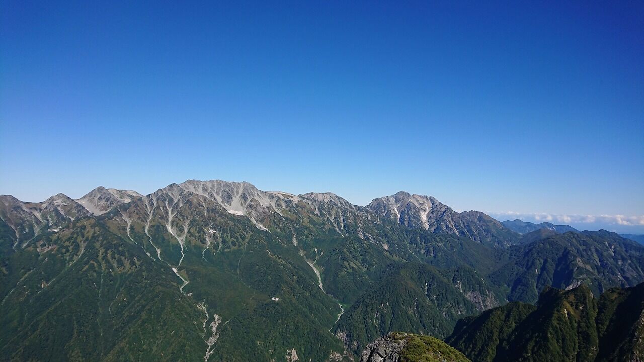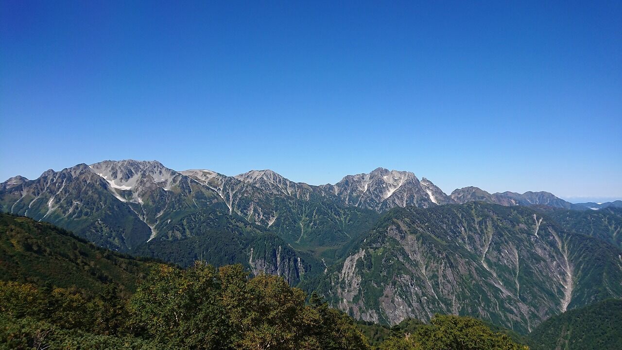 振り返ると鹿島槍のツインピークが。完全に晴れましたね。