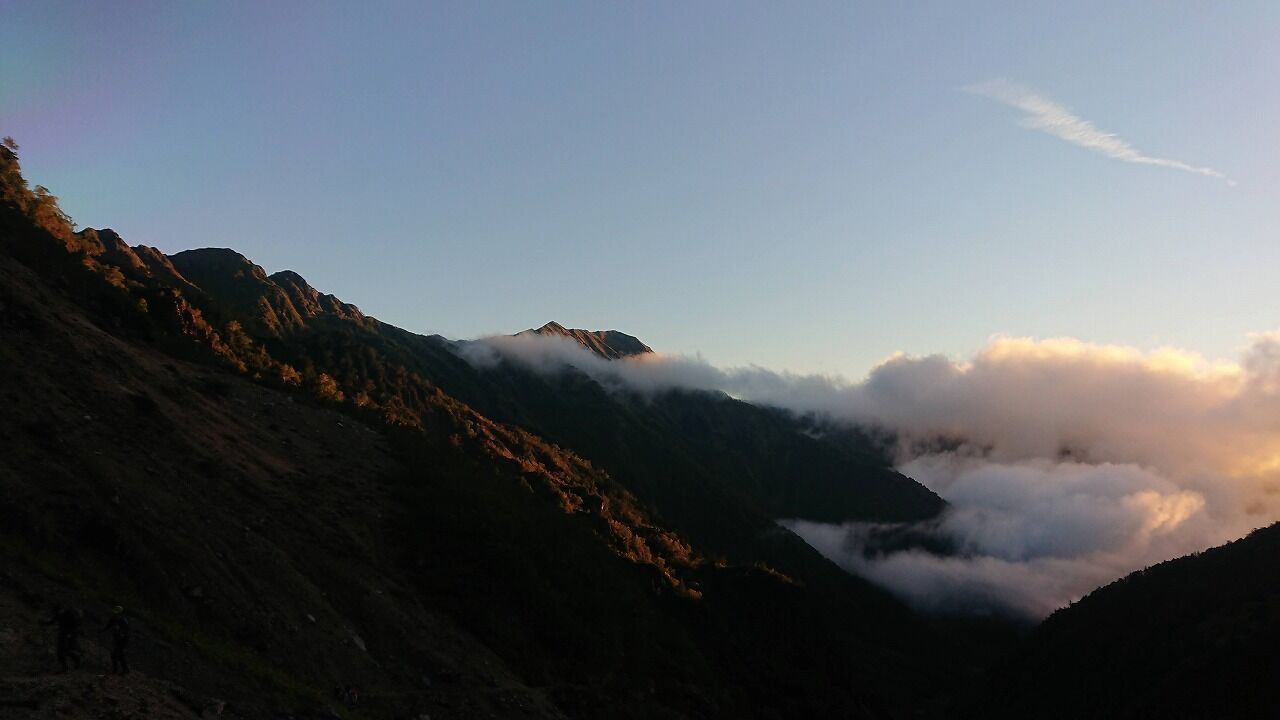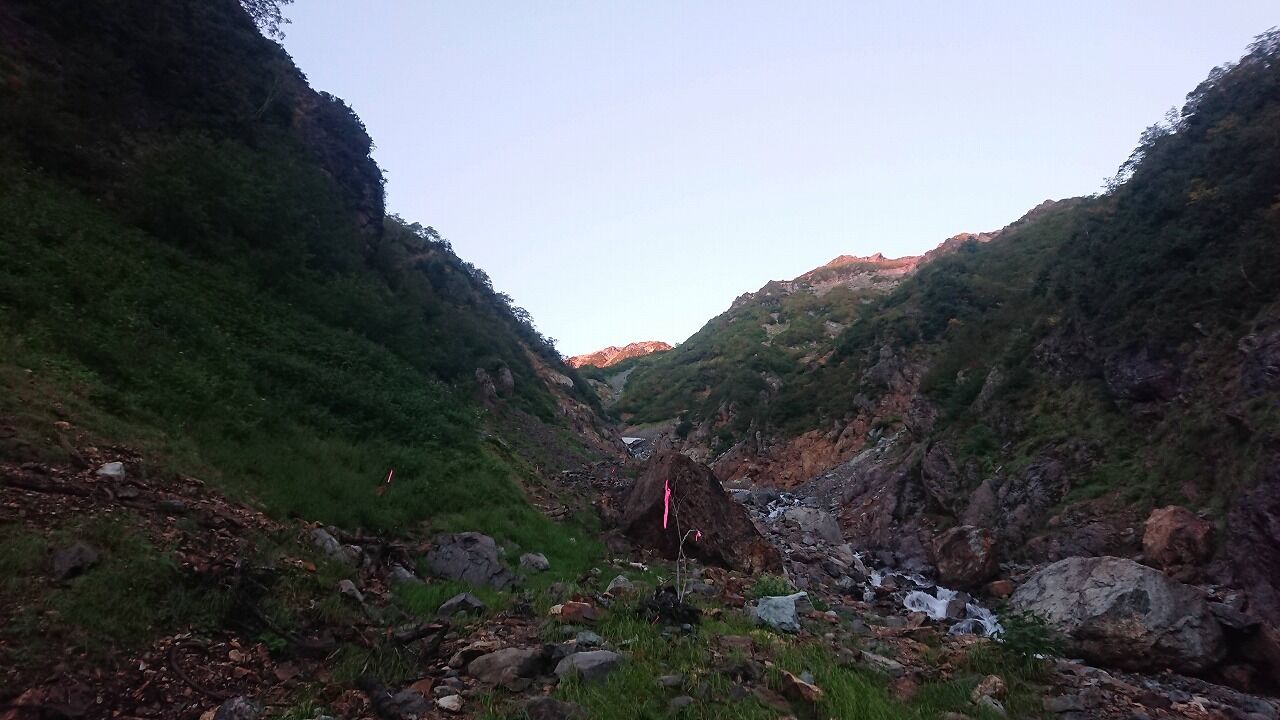 気づいたらガスが晴れて稜線がモルゲンロートです。