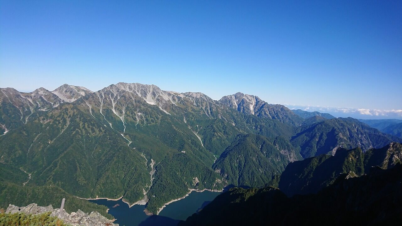 奥の山、剱岳ですね。なんか近く見える。そうか、黒部湖を挟んですぐ立山剱岳なんですね。