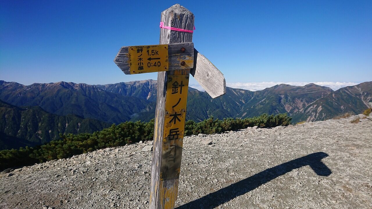 針ノ木峠が見えました。小さく案内標識が見えています。