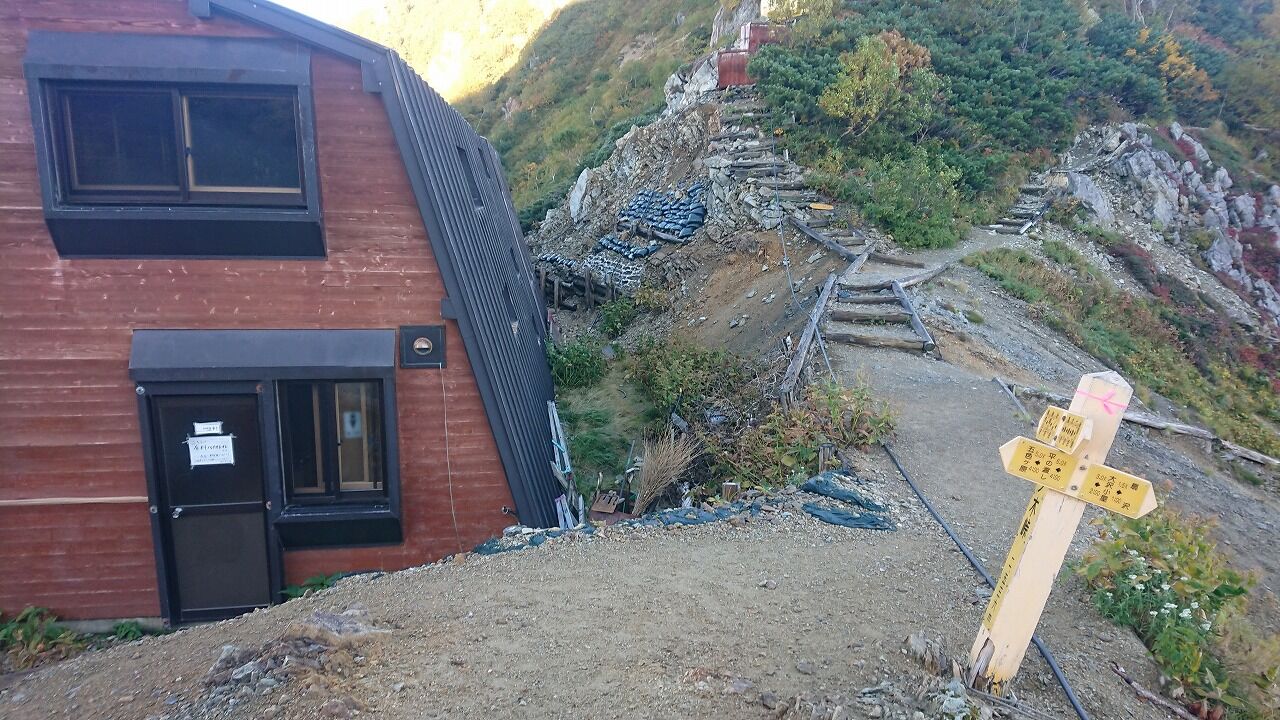コルと小屋に着きました。後ろ側の蓮華岳をピストンしてきます。