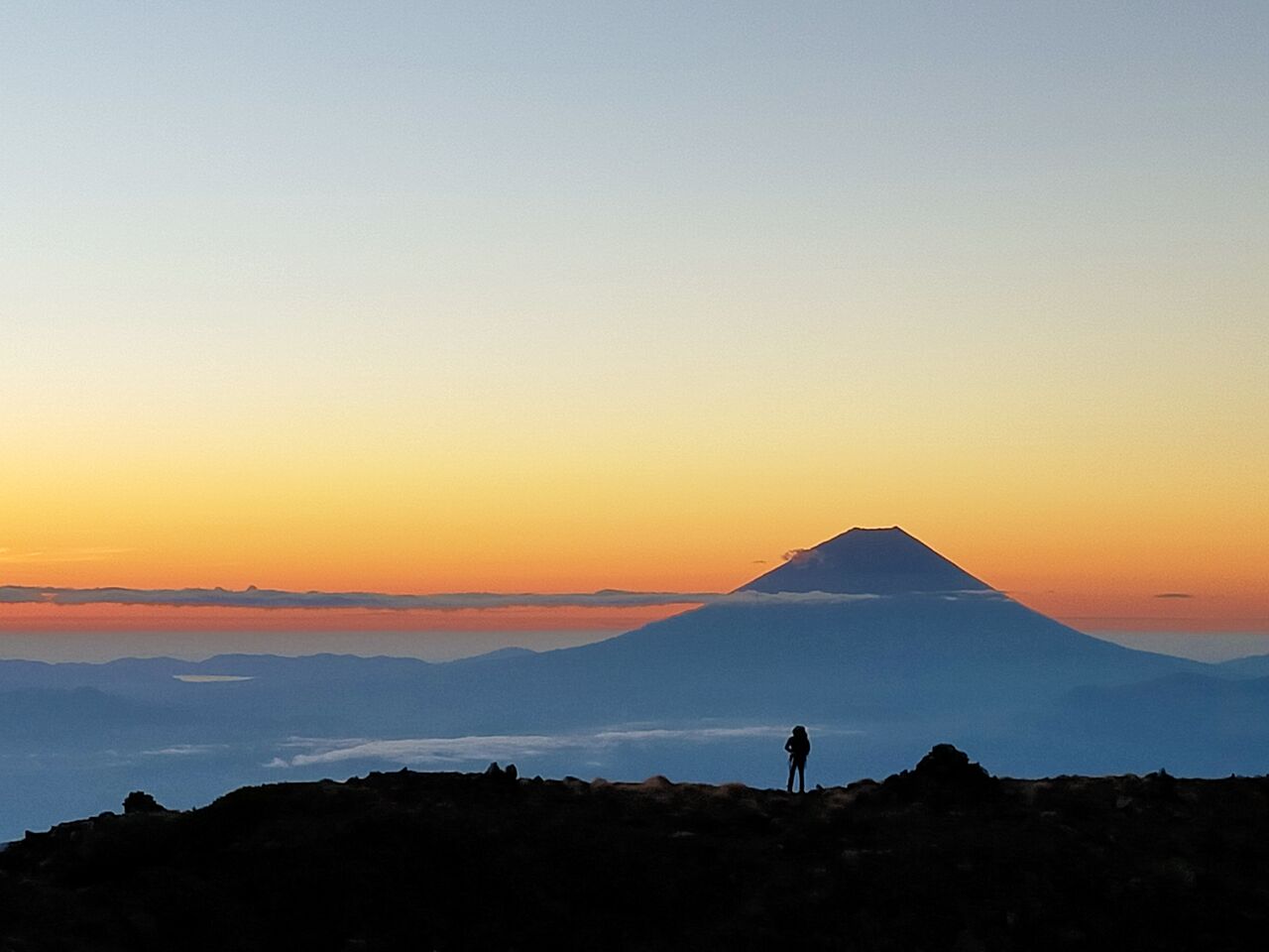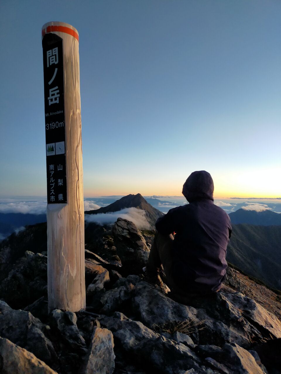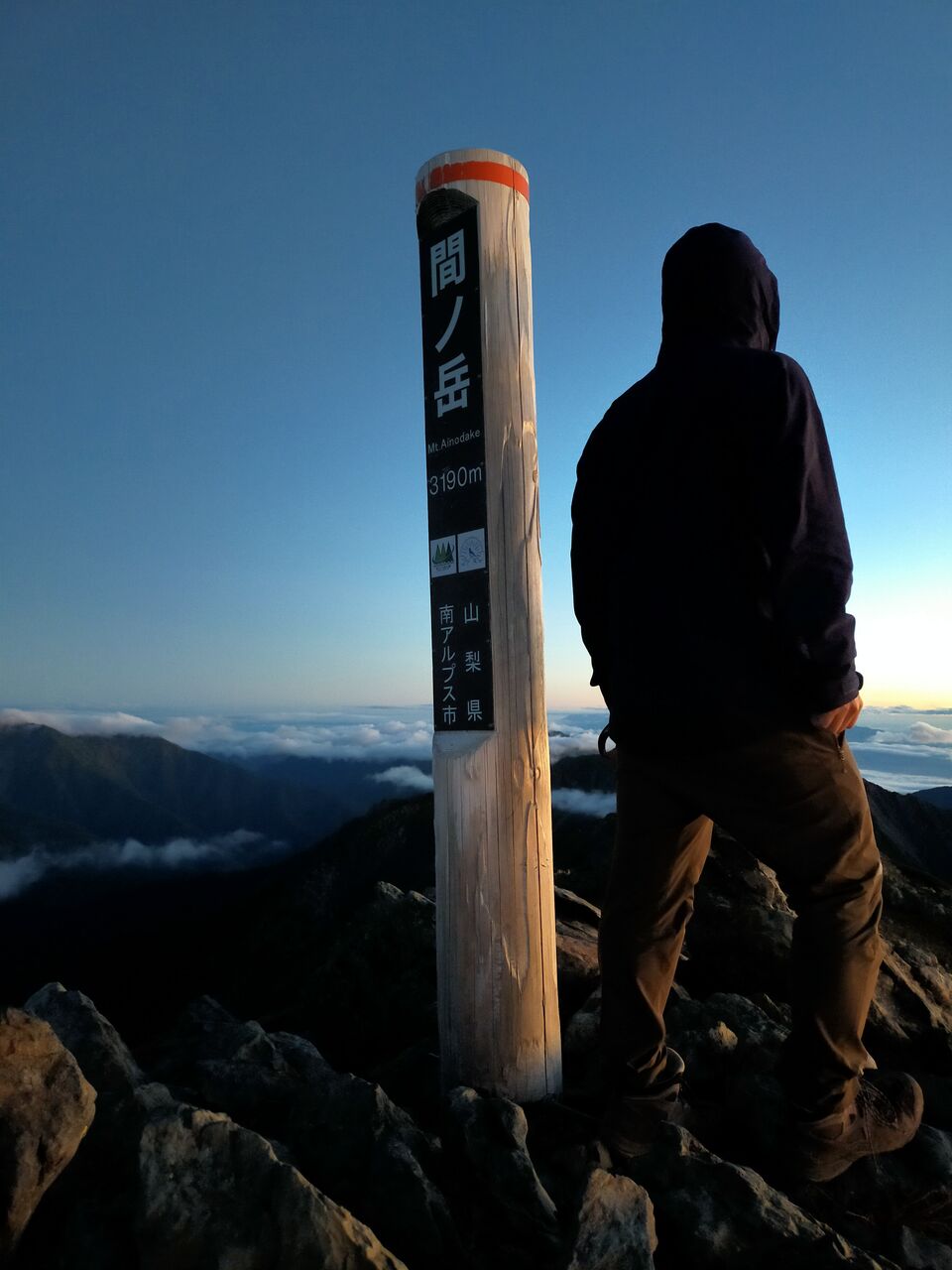 間ノ岳の頂上で夜景を見ようとスタートしたけど、さすがに早すぎた。。