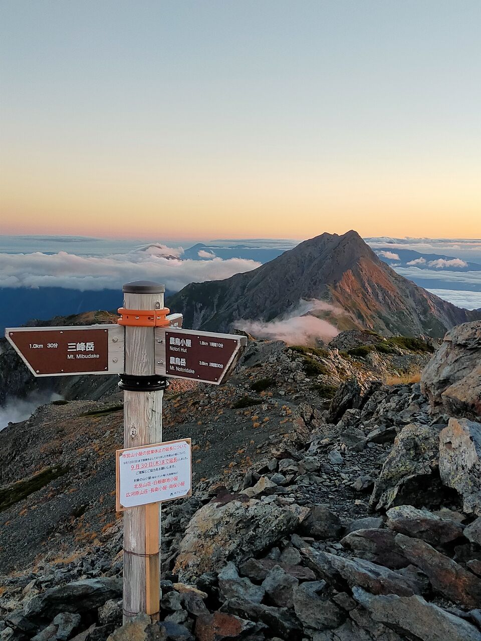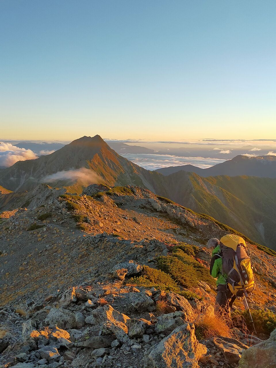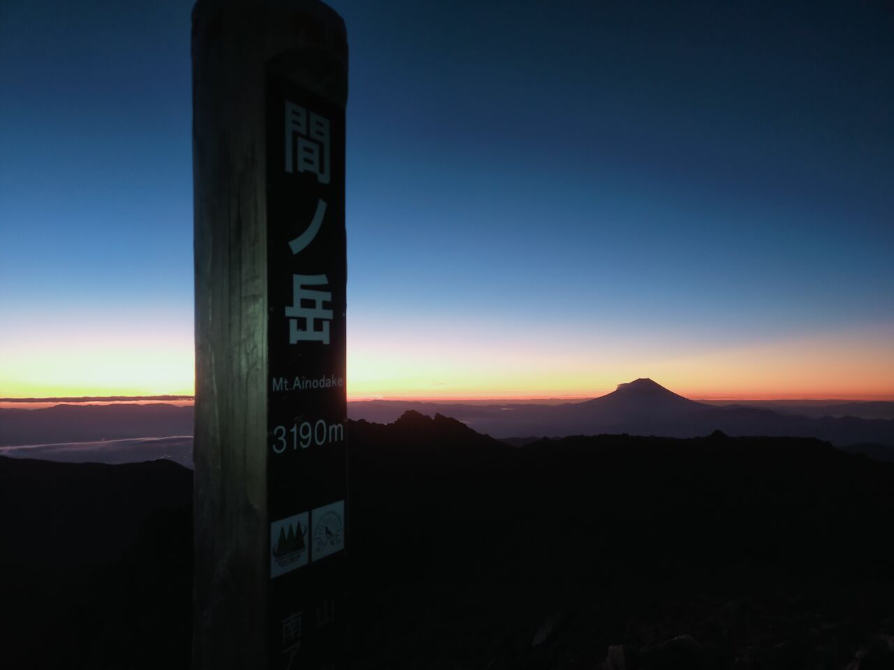 翌日、間ノ岳で日の出を迎えようと、朝ごはんはもらわずに、