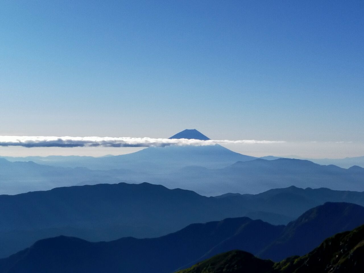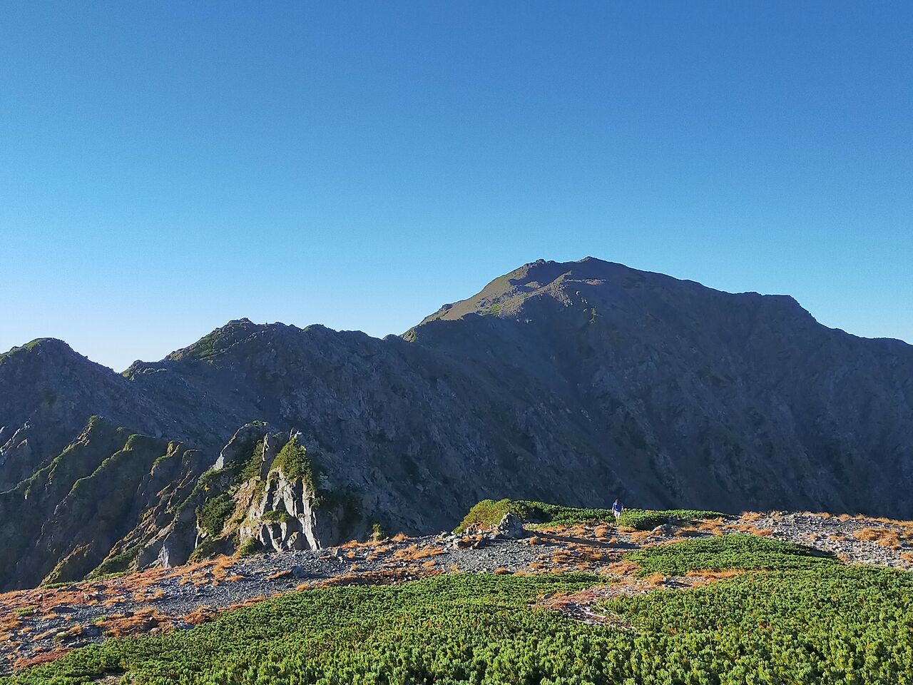 この前登った、漆黒の鉄兜こと塩見岳も見えています。