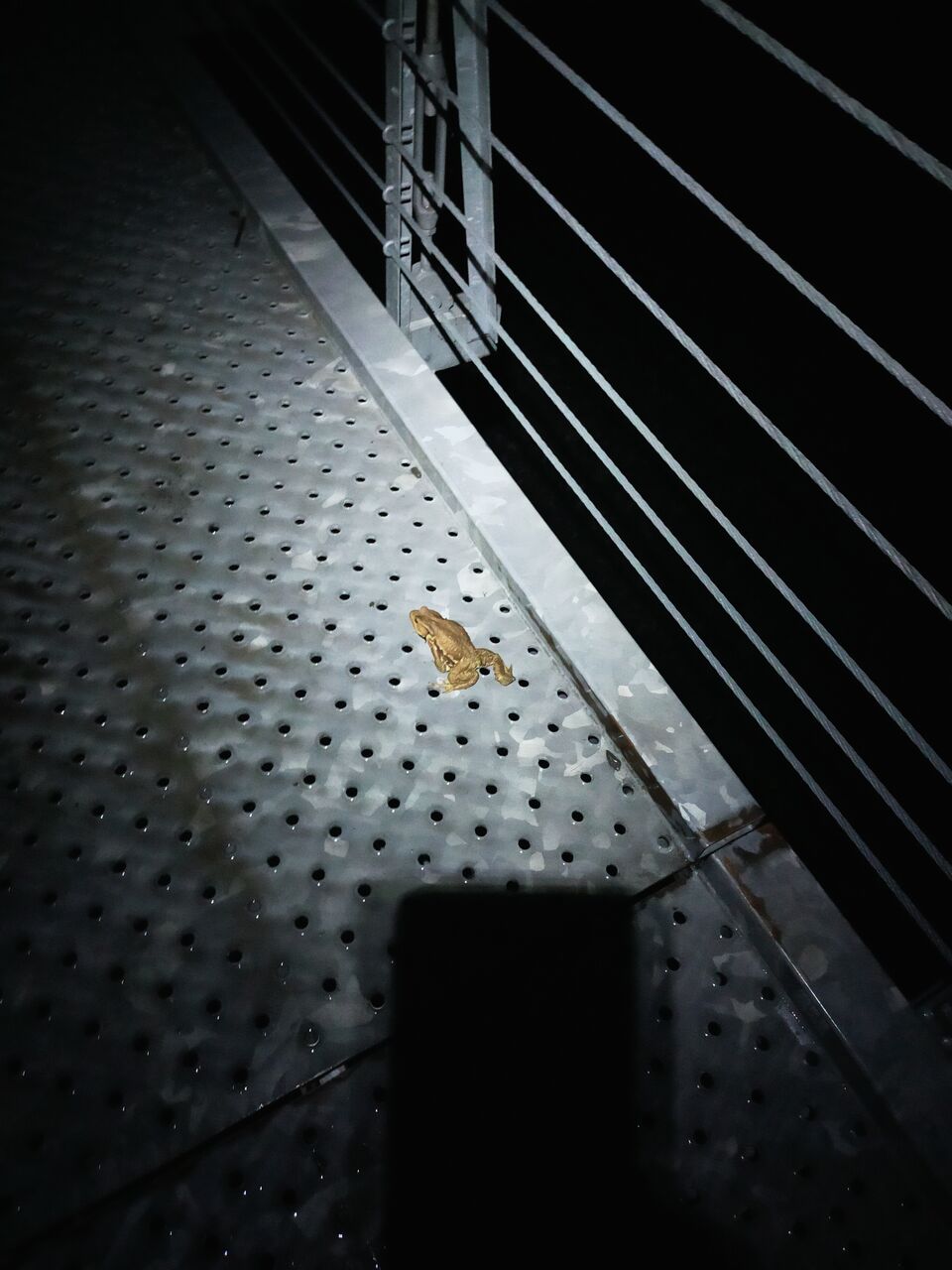 三人で協議した結果、結局、このガードを横からすり抜けて、この橋を渡りました。