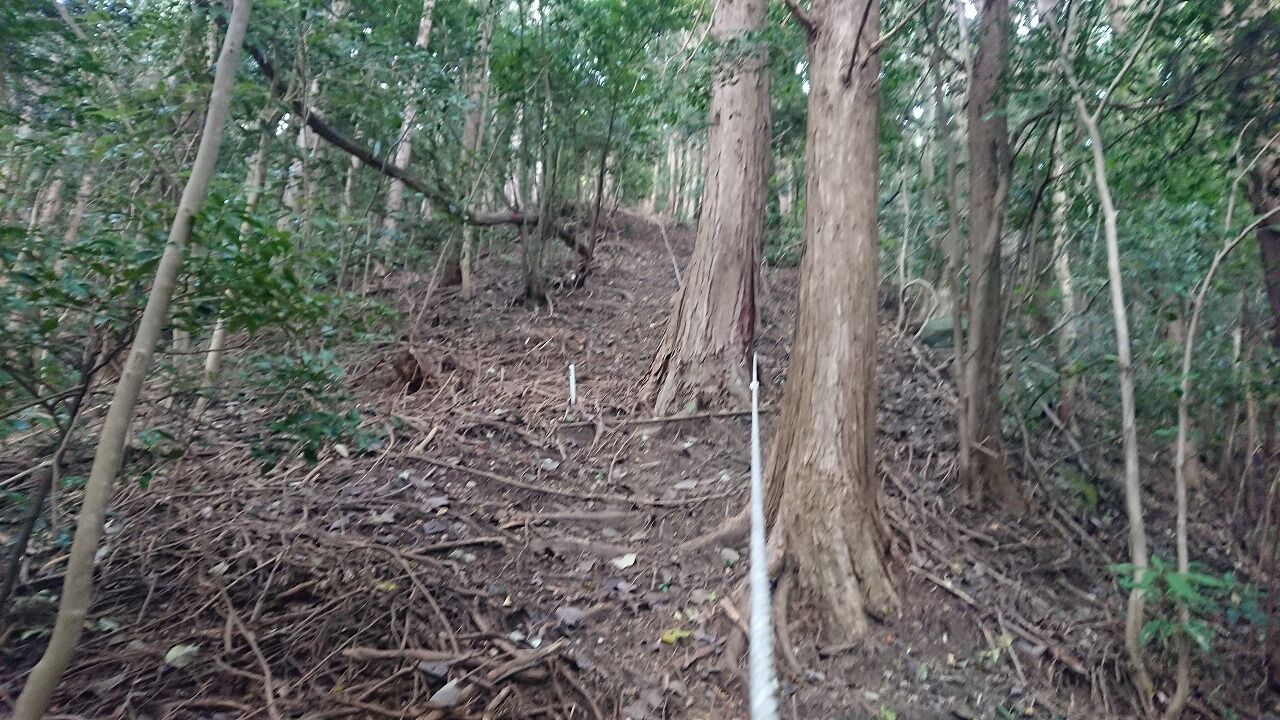 この後が問題です。4つだか5つだかの長いロープの張ってある急登があります。