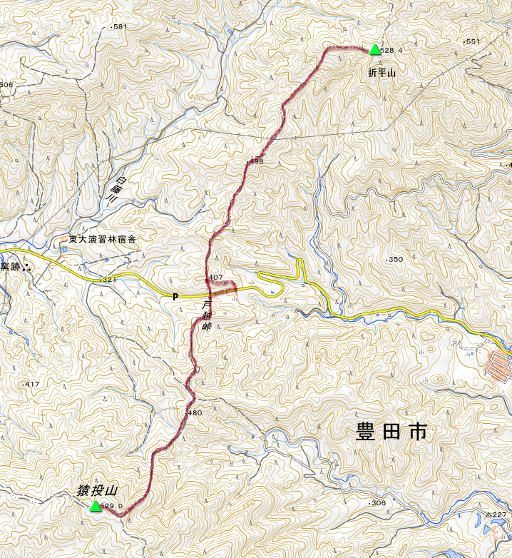 これの境目が猿投山へのルートです。