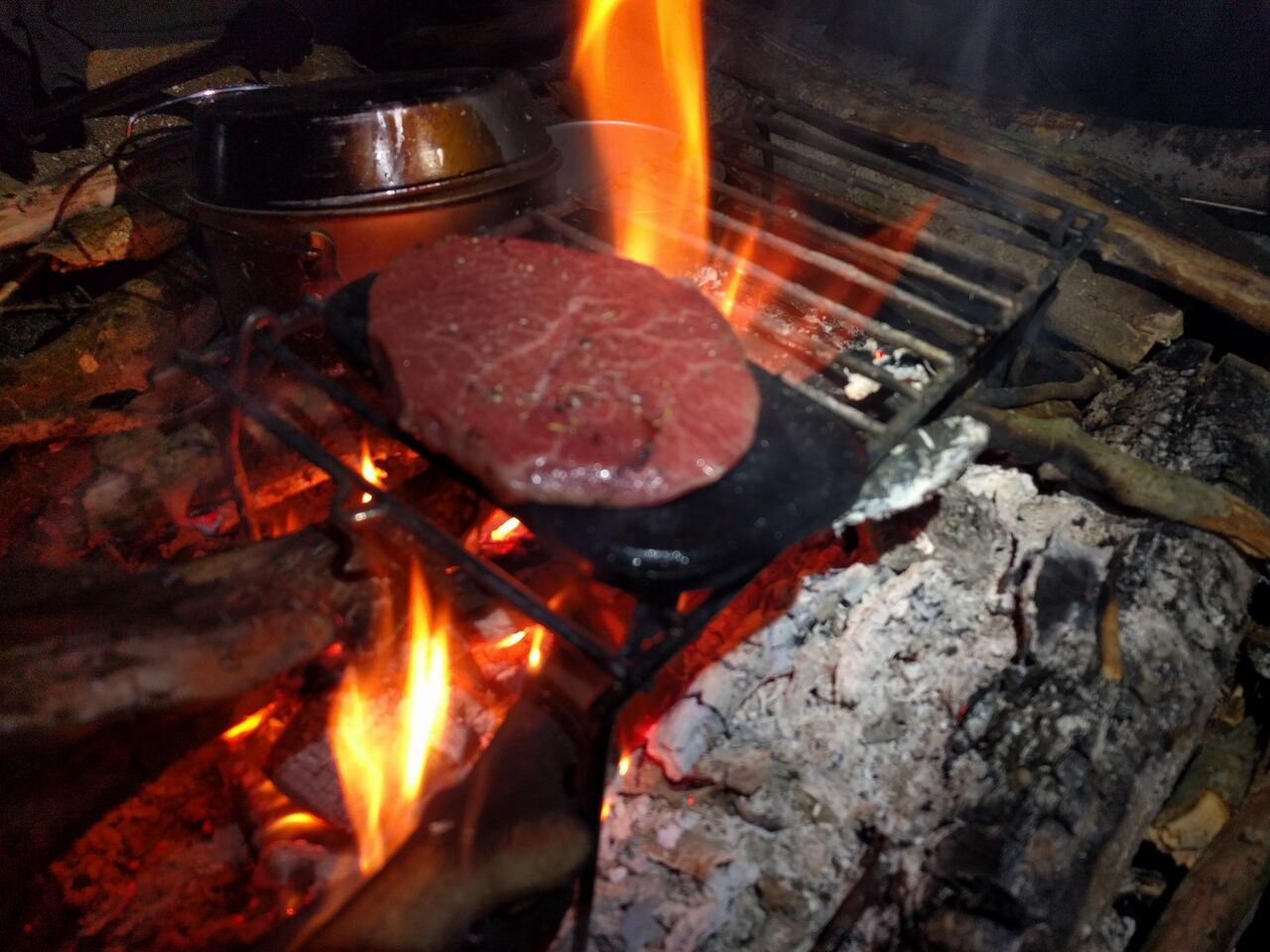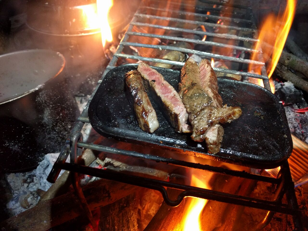 ビール・ワイン、お肉等の食材、薪をもって上がります。