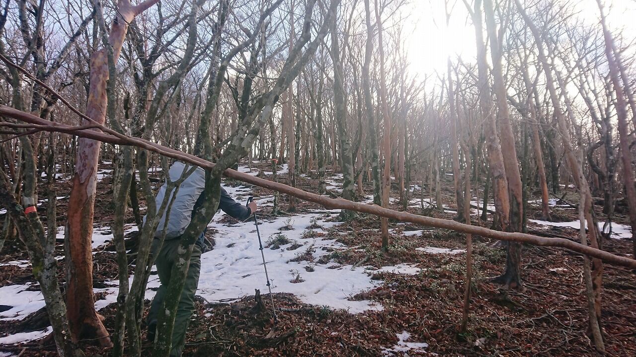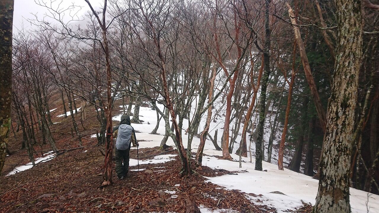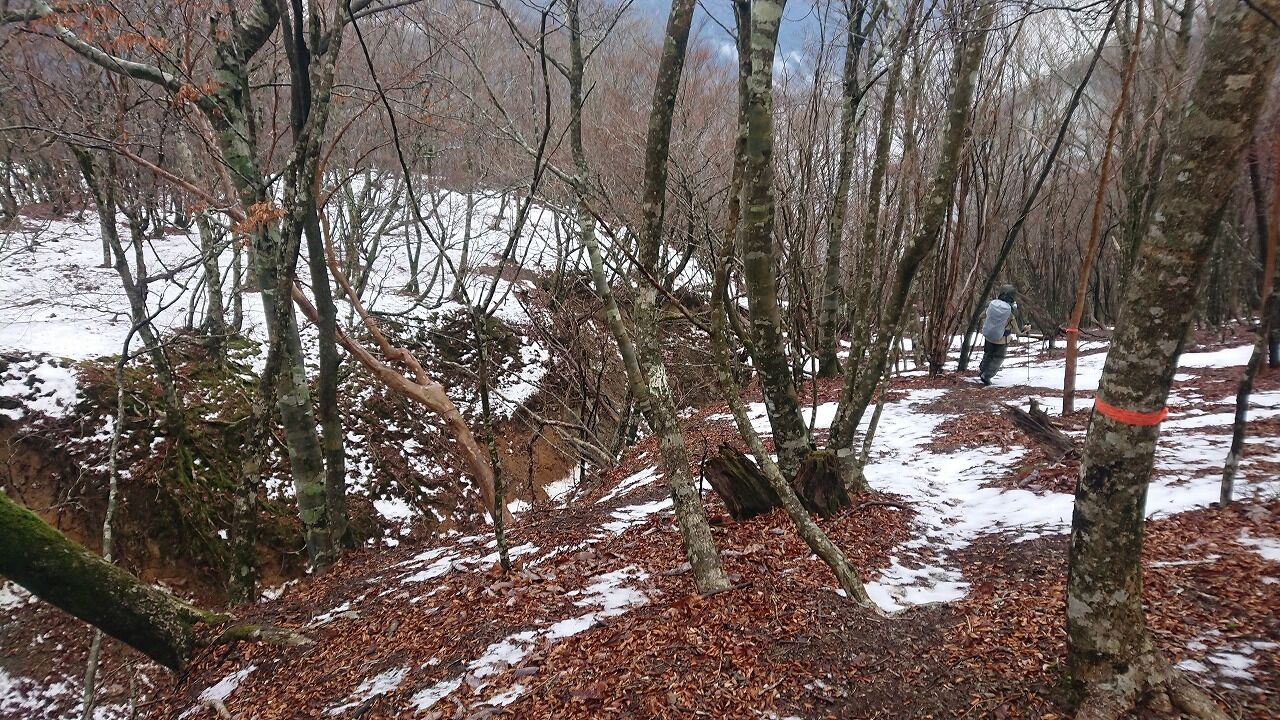 このあと連れは巻道へ。私は稜線上の中ノ嶺経由で、新木組峠で合流します。